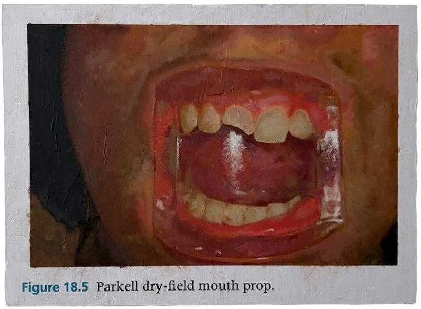The images taken from the Handbook of Clinical Techniques in Pediatric Dentistry by Jane A. Soxman are part of a tradition of art that styles itself as pedagogy, such as Young Read ers Press First Dictionary illustrated by John Seares Riley. By separating these images from their original form, the question of authorship is reintroduced. More so than art, science has tried to position itself as objective and process-driven, consciously de-emphasizing the discoverer, the analog for the creator or author in art. Famously, the Krebs Cycle was renamed the Citric Acid Cycle in order to promote a sense of collective discovery among students.